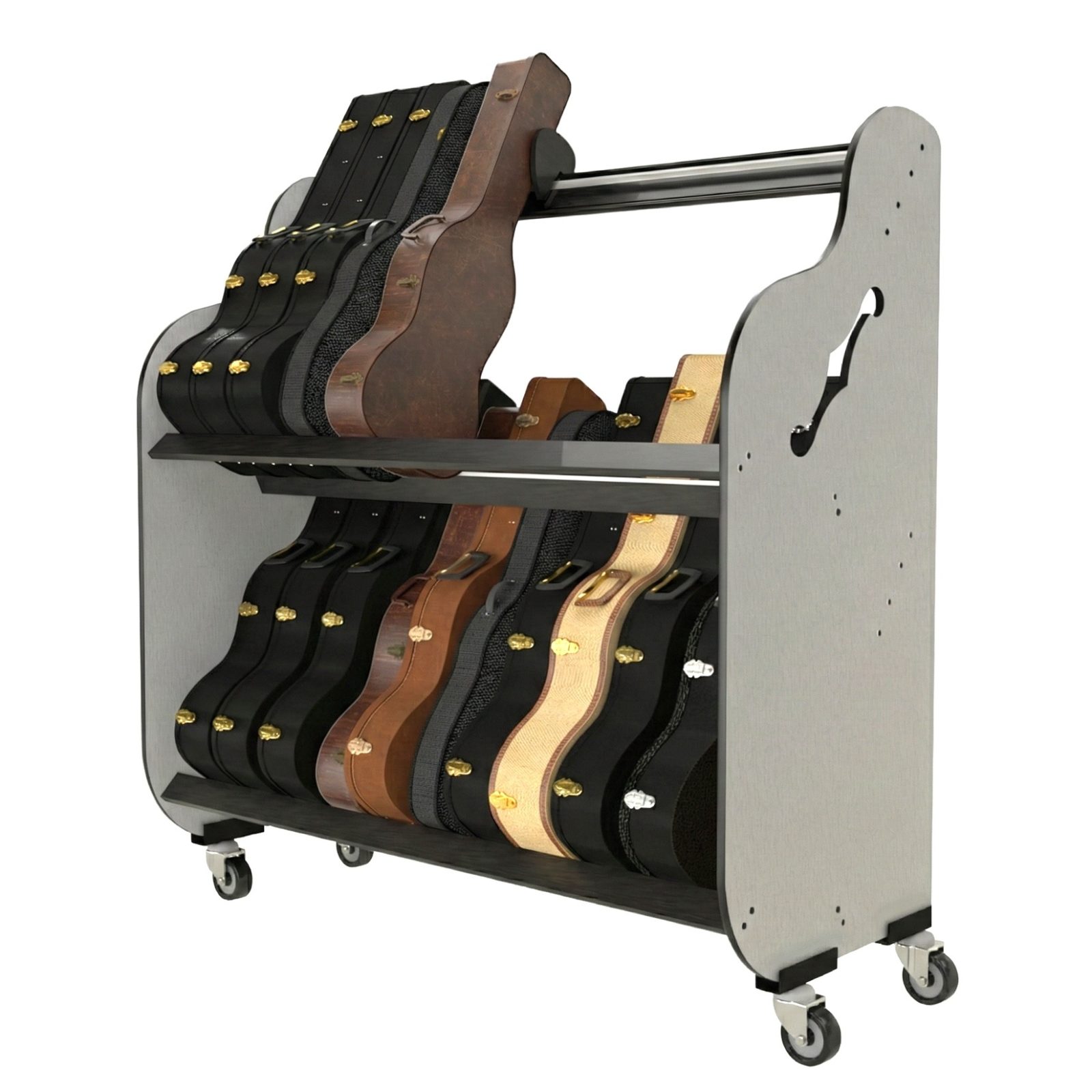 The Session-Pro™ Double-Stack Mobile Electric Guitar & Case Shelf Racks for Schools