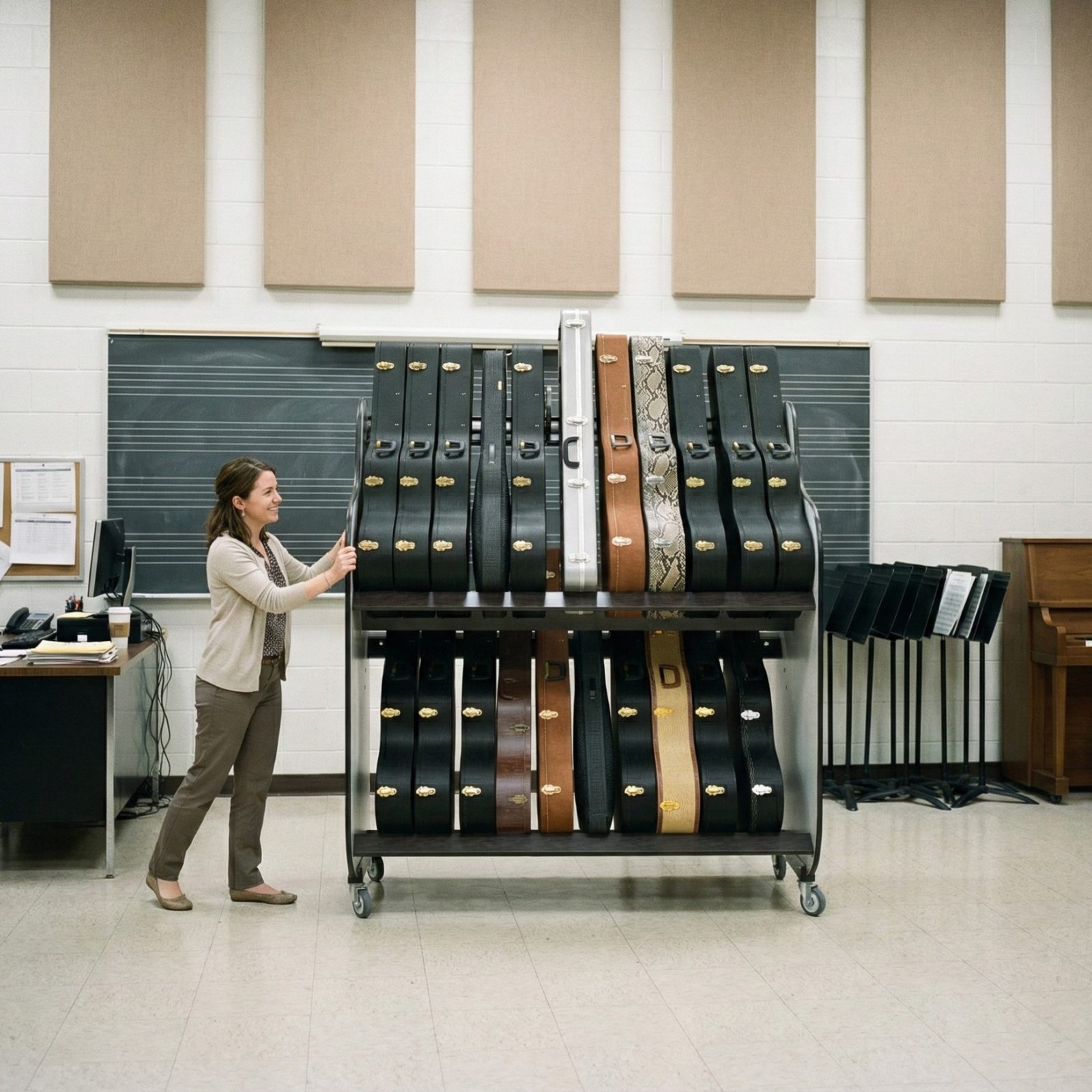 If you’re a guitar ensemble or chamber ensemble teacher with a room full of acoustic guitars, staying organized can be a challenge. The Band Room™ Guitar Shelf Rack, by A&S Crafted Products, is designed to help you manage your instruments in a clean, safe, and space-saving way—so you can spend more time teaching and less time untangling clutter.
